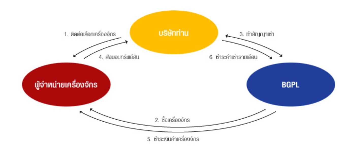 หากท่านต้องการขยายกิจการโดยเพิ่มเครื่องจักรและอุปกรณ์ เครื่องจักรกลหนัก ฯลฯ เพื่อใช้ใน การผลิต และการบริการ บมจ. กรุงเทพแกรนด์แปซิฟิคลีส สามารถให้การสนับสนุนท่านได้โดยจัดซื้อเครื่องจักรและอุปกรณ์นั้นแก่ท่าน โดยท่านชำระเงินดาวน์บางส่วนพร้อมเงื่อนไขการชำระค่าเช่าซื้อจำนวนคงที่เป็นรายเดือนตลอดอายุสัญญา กรรมสิทธิ์ในทรัพย์สินจะเป็นของท่านเมื่อครบกำหนด วิธีการนี้จะทำให้ท่านเหลือเงินทุนหมุนเวียนไว้ใช้ในกิจการ