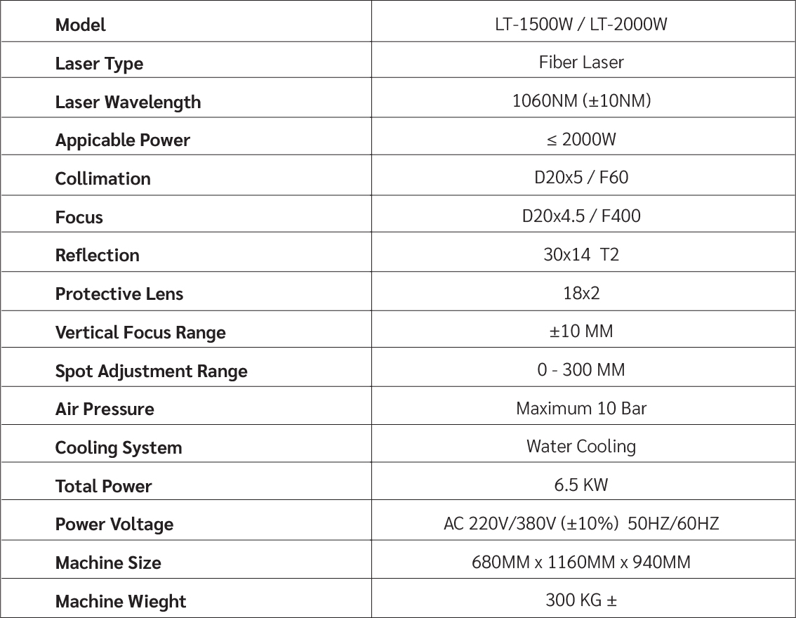 ระบบทำความสะอาดโลหะด้วยไฟเบอร์เลเซอร์ อุปกรณ์นี้ใช้ระบบระบายความร้อนด้วยน้ำ (COOLLING) และทำงานด้วยไฟเบอร์เลเซอร์ การใช้งานง่าย ด้วยสายความยาว 10 เมตร ซึ่งสามารถคลีนนิ่งโลหะให้สะอาดได้อย่างดี ประสิทธิสูง